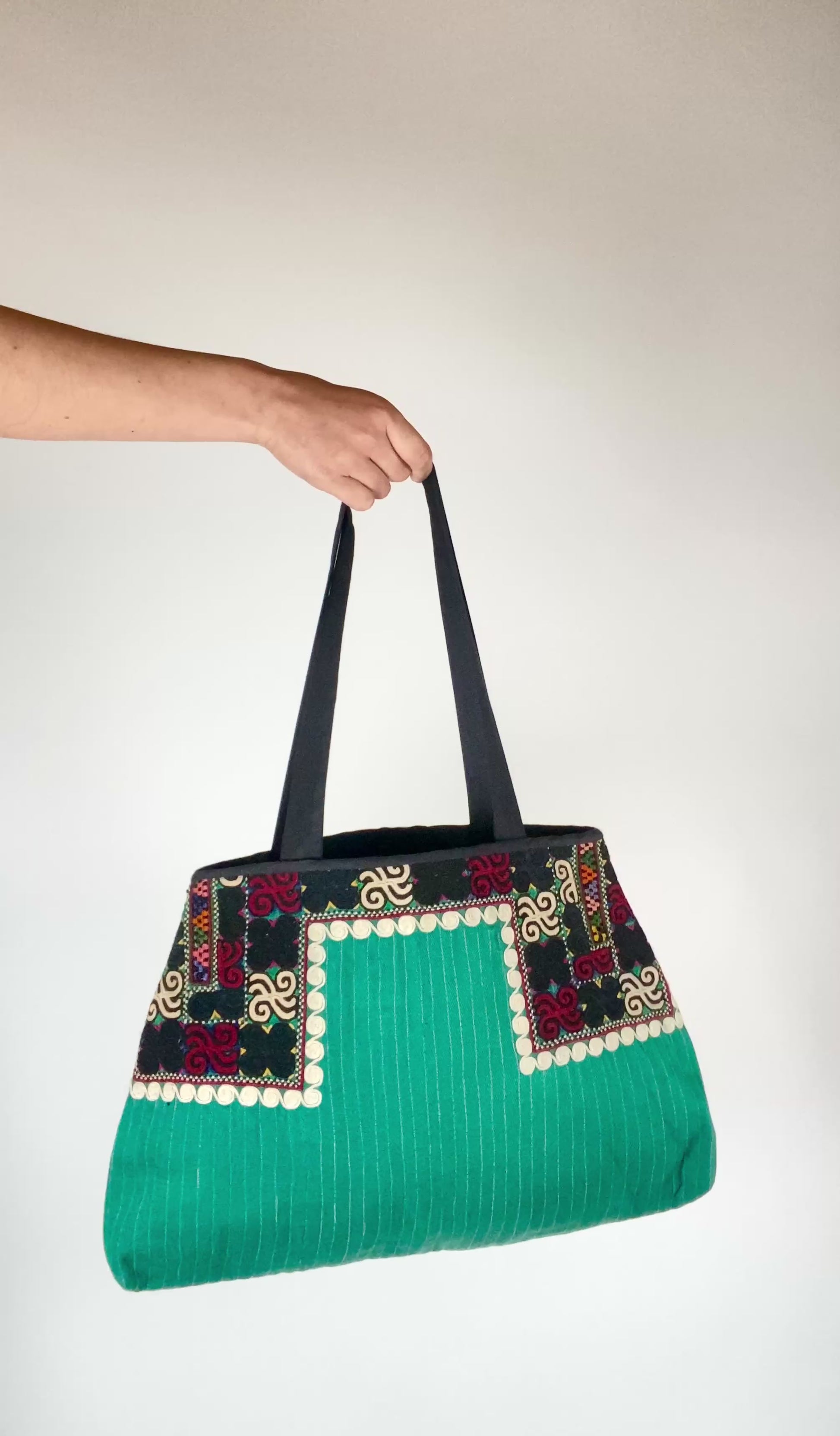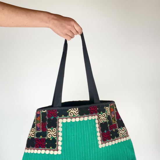 Our bags are made from traditional Turkmen fabrics. They reflect the ancestral know-how of Central Asian artisans, with geometric patterns and natural colors.