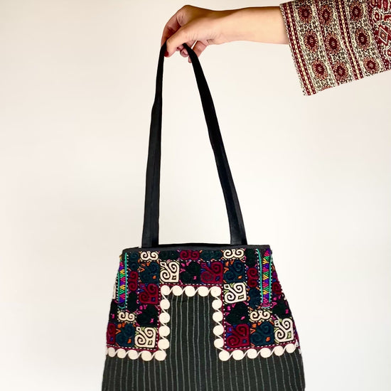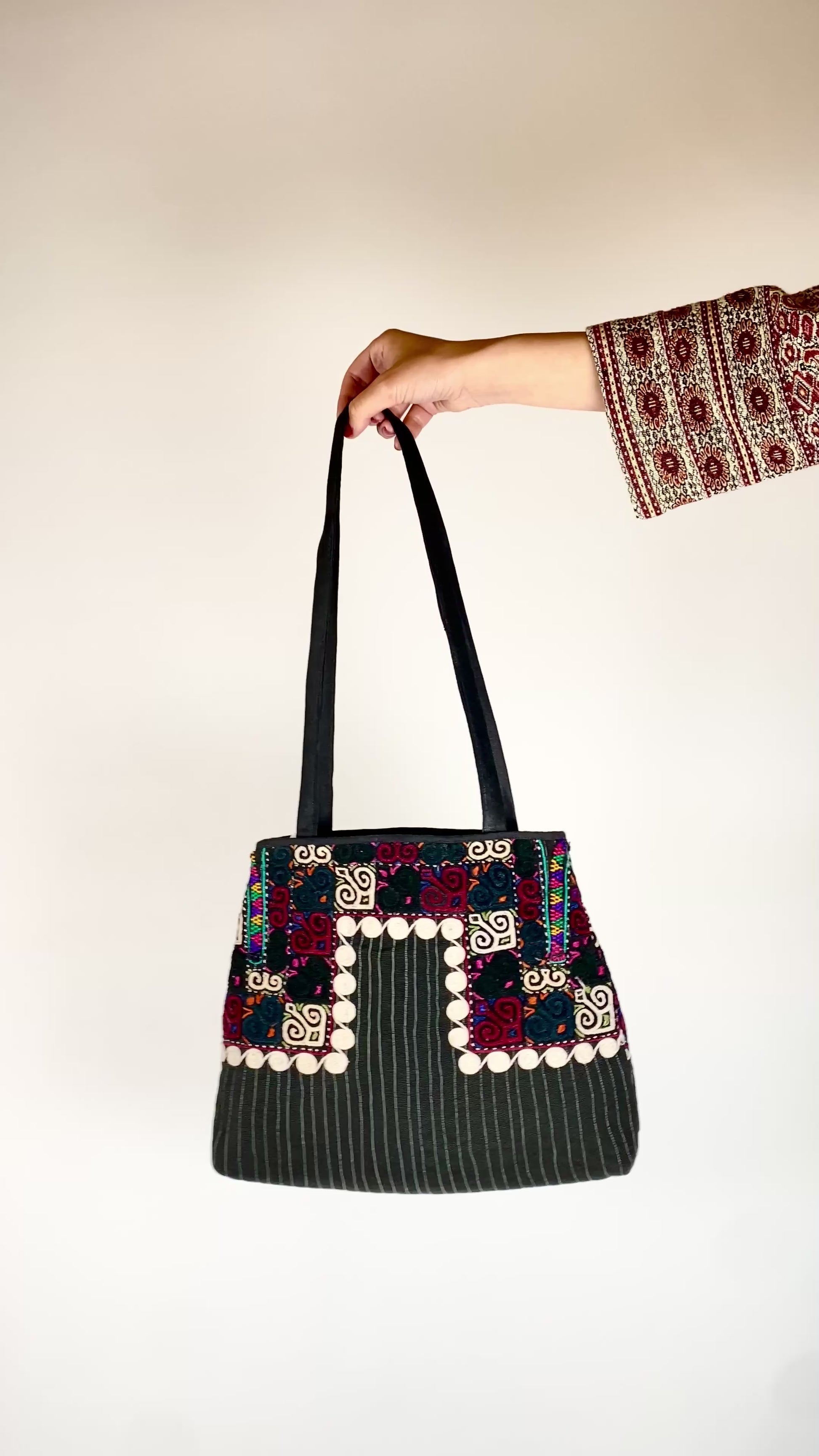 Nos sac sont confectionné à partir de tissus turkmènes traditionnels. Ils reflètent le savoir-faire ancestral des artisans d'Asie centrale, avec des motifs géométriques et des teintes naturelles.